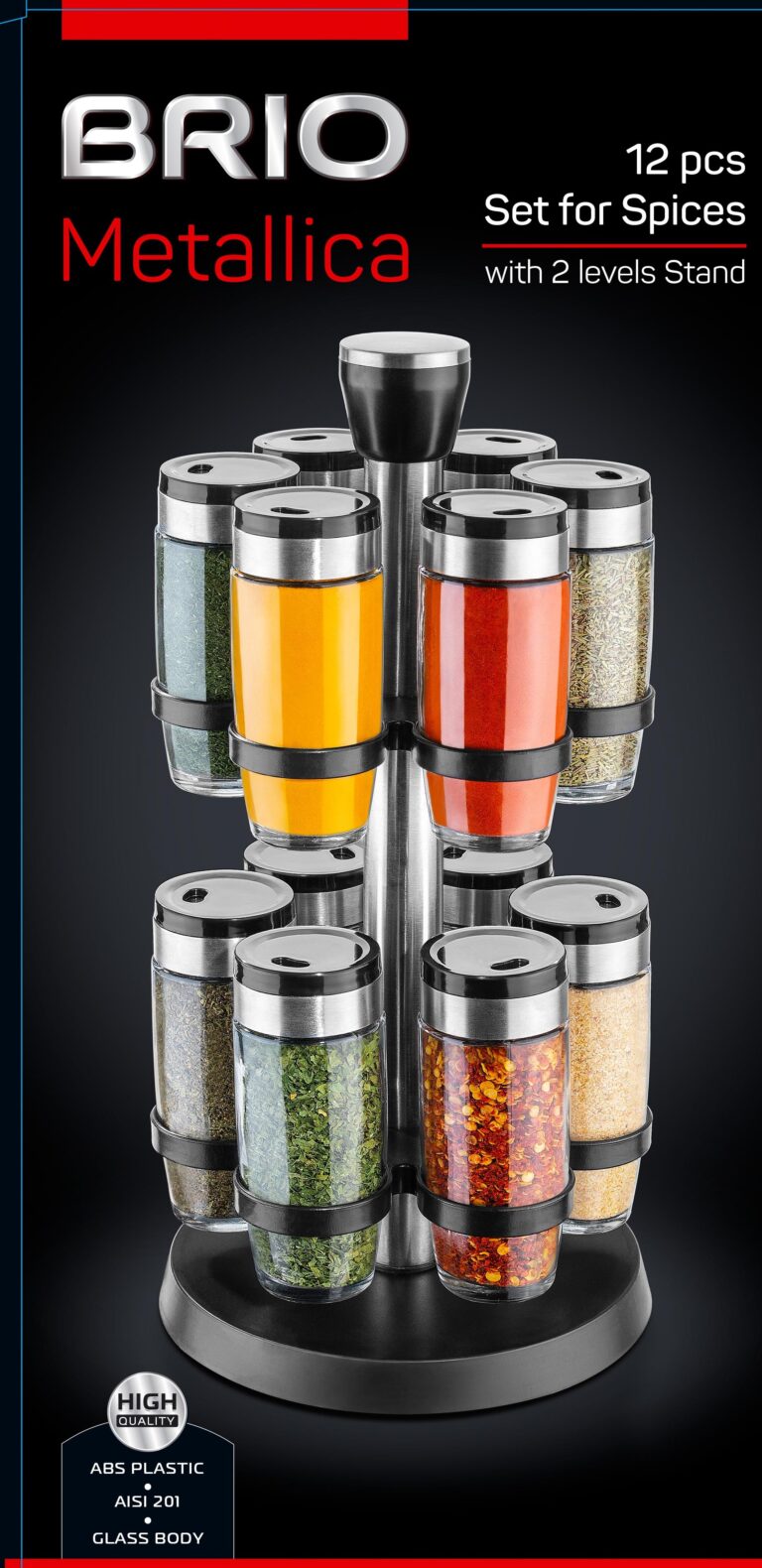 BRIO METALLICA – Set 12 piese condimente cu suport rotativ 90 ml, doua nivele (6)