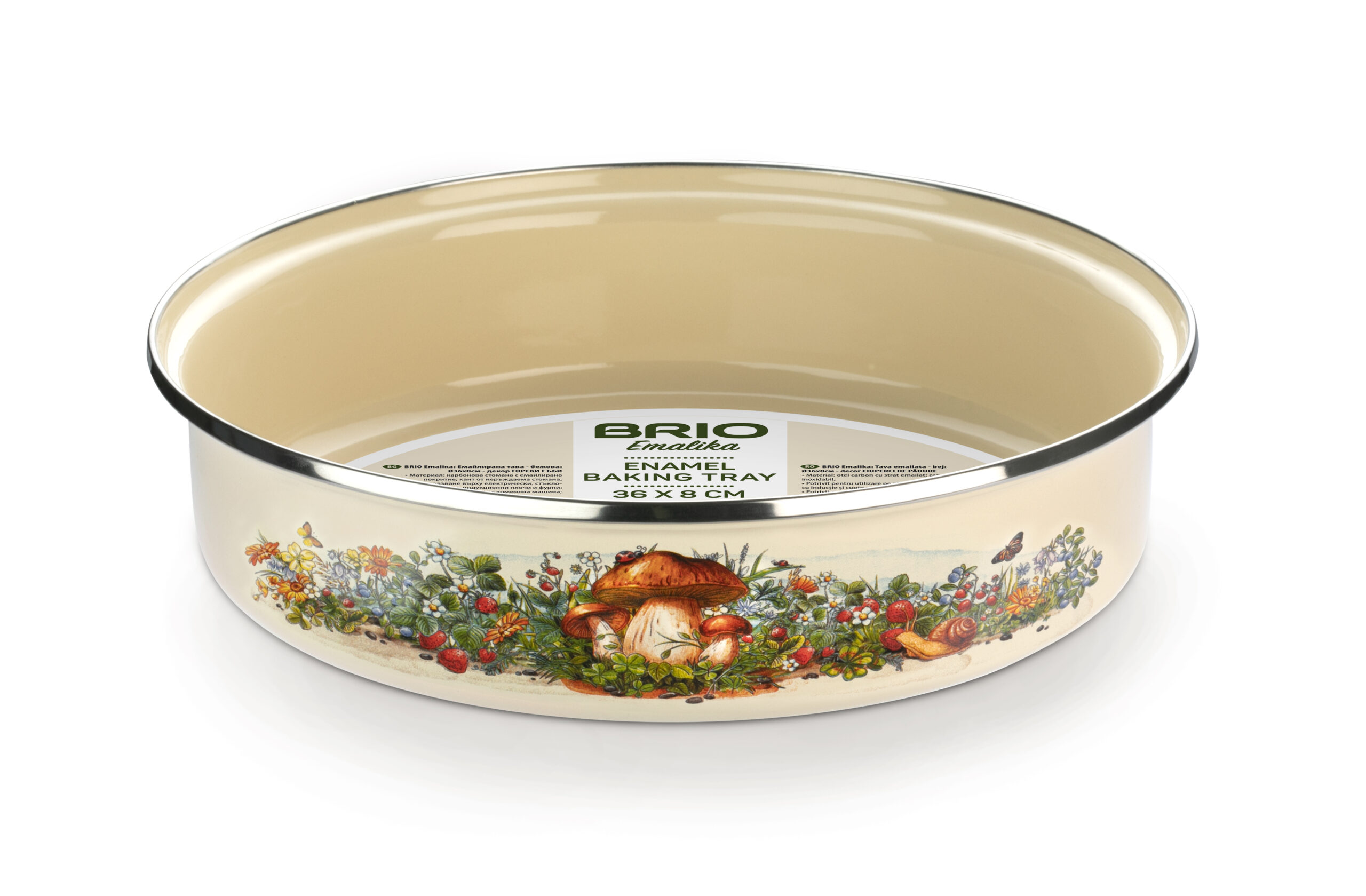 BRIO EMALIKA – Tava emailata bej (36×8 cm)- Ciuperci de padure (6)